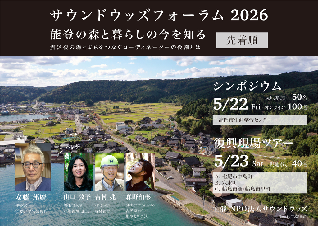 私たちサウンドウッズは、国内人工林の森林資源の有効活用を提案・実践し、環境保全意識の高い豊かな社会づくりと、健全な森林づくりを次世代につなげます。